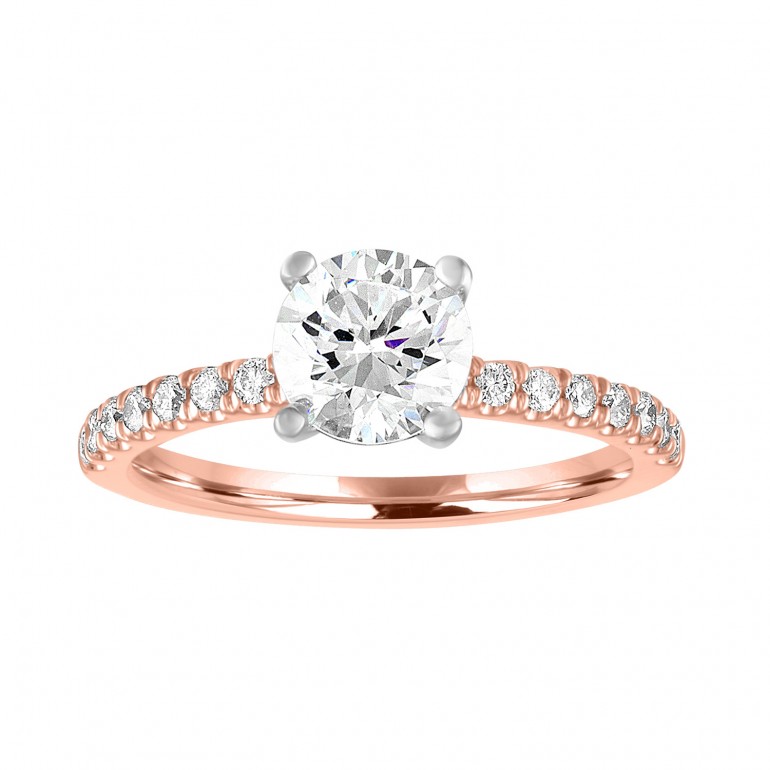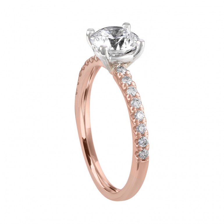 The beauty of our two tone engagement ring lies in its simplicity. Made with diamond pink gold shank and white gold center setting this ring will enhance any center diamond you choose.