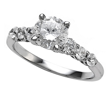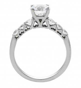 Seven represents perfection, and the precise amount of stones to give complete top of band coverage with the appearance of a full diamond band. Featured here, a 7 stone engagement ring with brilliant round center in Azul’s charming heart setting.